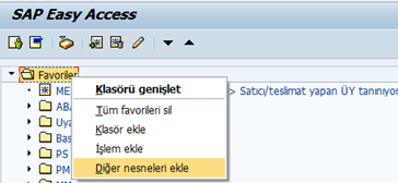 Her seferinde çok kullandığınız işlem kodlarını SAP menüsünden arayıp bulmak zor olabilir. Bunun için SAP menüsünün yanında Favori listenizi oluşturup SAP menüsünde vakit kaybetmekten kurtulabilirsiniz.