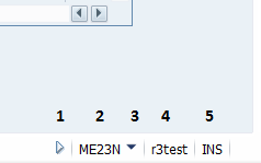 4 nolu yerde sistemin adı yazar. 5 nolu yerdeki INS(Insert) klavyedeki insert tuşu aktif demektir. INS in üzerine bir tık atarsanız o bölümde OVR(Over write) yazar. Eğer bu şekilde SAP ekranında herhangi bir kelimenin ortasından kelimeyi düzeltmeye çalışırsanız imlecin olduğu yerin sağındaki harfleri silerek yeni harfleriniz yazılır.