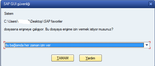 Gelen ekranda “Bu bağlamda her zaman izin ver” seçilip “TAMAM” a tıklandığında Favorilerin oluştuğunu görürsünüz.